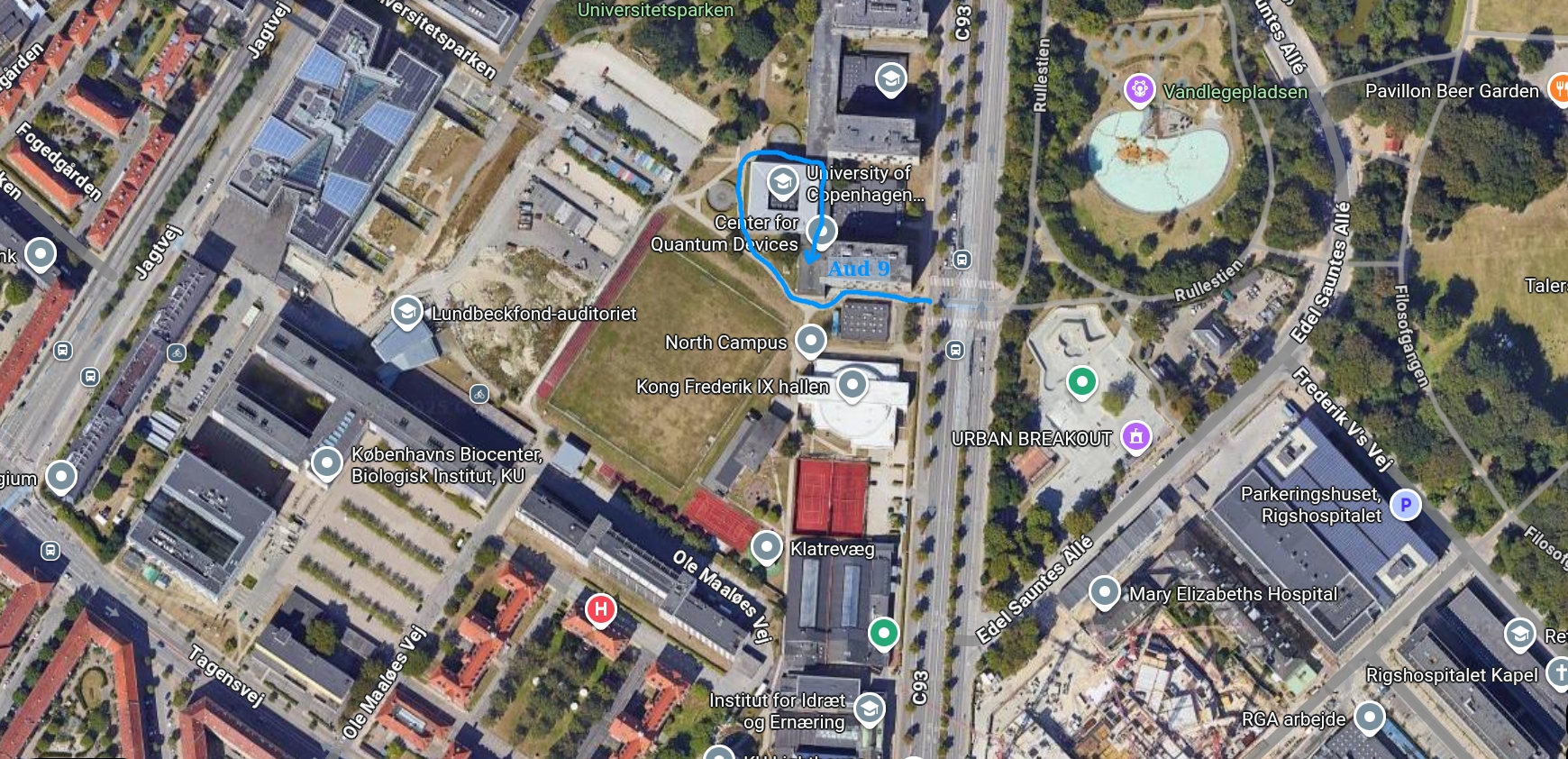 Schedule: (URLs below, as e.g. HCØ Aud 9, lead to Google Maps pins)